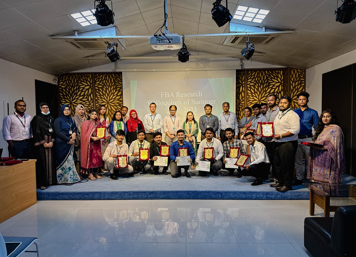 For the colloquium, students, under the guidance of faculty supervisors, prepared and exhibited their research work through digital poster presentations, on diverse disciplines like Marketing, Human Resource Management, Management Information Systems, Social Science, and others. Prof. Dr. Md. Jashim Uddin, Head, Department of Mathematics, Faculty of Science and Technology, and Prof. Dr. Md. Faruque Hossain from Department of Operations and Supply Chain Management, FBA, provided their invaluable opinions and also future directions on the research works, which motivated the young researchers to carry on making significant contributions to their particular academic disciplines. Prof. Dr. Md. Jashim Uddin emphasized that the success of this showcase event is a testament to the FBA's dedication to promoting interdisciplinary collaboration and research in the business arena.