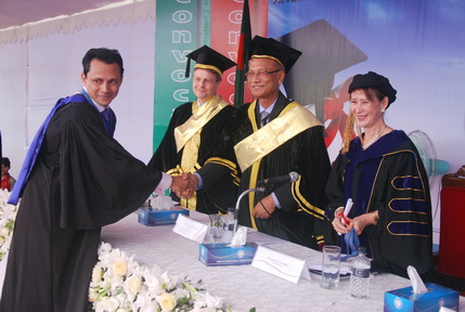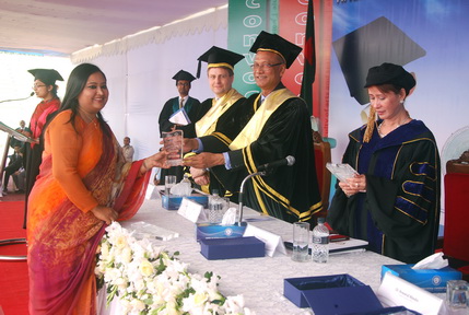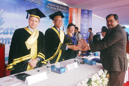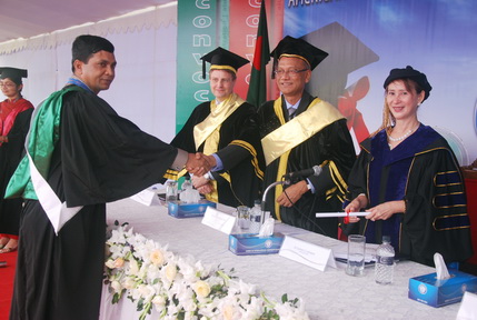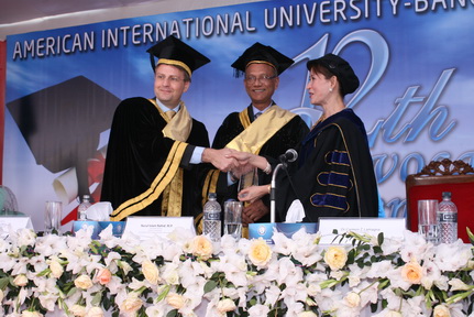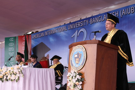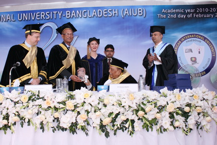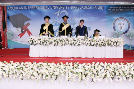 The Founder & Vice Presidents of AIUB Dr. Hasanul A. Hasan(Treasurer), Mr. Ishtiaque Abedin, Ms. Nadia Anwar along with the Vice President (Academics) Prof. Tafazzal Hossain, Registrar, Vice Chancellors of other Universities, AIUB Faculty members, parents and guardians, Academic Council members, Syndicate members, Deans and officers graced the Ceremony. Along with the graduating students and their families a large number of local and foreign dignitaries and members of the print and electronic media also attended the 12th Convocation Ceremony of AIUB. |