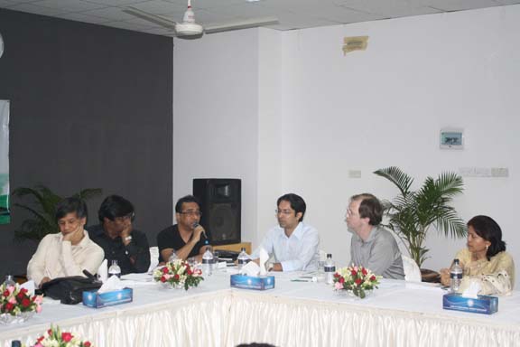 Sloan Kulper, BGBC Advisory Board member and an internationally renowned social entrepreneur and Architect from MIT and current Vice President and Chief Design Officer of One Earth Designs, Inc., an international environmental technology firm, was also present at the event. Kulper worked at a US design consulting firm where he created new products for major international brands, developed biogas energy solutions in Bangladesh and helped launch a non-profit organization producing renewable energy kits for rural markets in Africa and Latin America. A winner of 2009 MIT IDEAS Competition and semifinalist of 2010 Harvard Business Plan, he also received funding from the US Environmental Protection Agency (EPA) and MIT Development Business Plan in 2010. Holly Battelle, former research assistant in the Macroeconomic Analysis Division at the Congressional Budget Office (CBO) working primarily with biannual economic forecasts for the US Congress focusing on the US housing market was also present at the event. Presently researching the feasibility of solar technology in urban Bangladesh, she also works on fiscal multipliers, climate change, forecast accuracy and the high employment budget model. American Fulbright Fellow, Jeremy Wendte who is studying the role of solar electrification in Bangladesh, by combining economic, social and technical investigation is working to present a clear and complete picture of the role of photovoltaic power in a developing nation such as Bangladesh. Steve Limpert, an American circumnavigator’s researcher, also researching Solar Technologies in Bangladesh was present at the event.