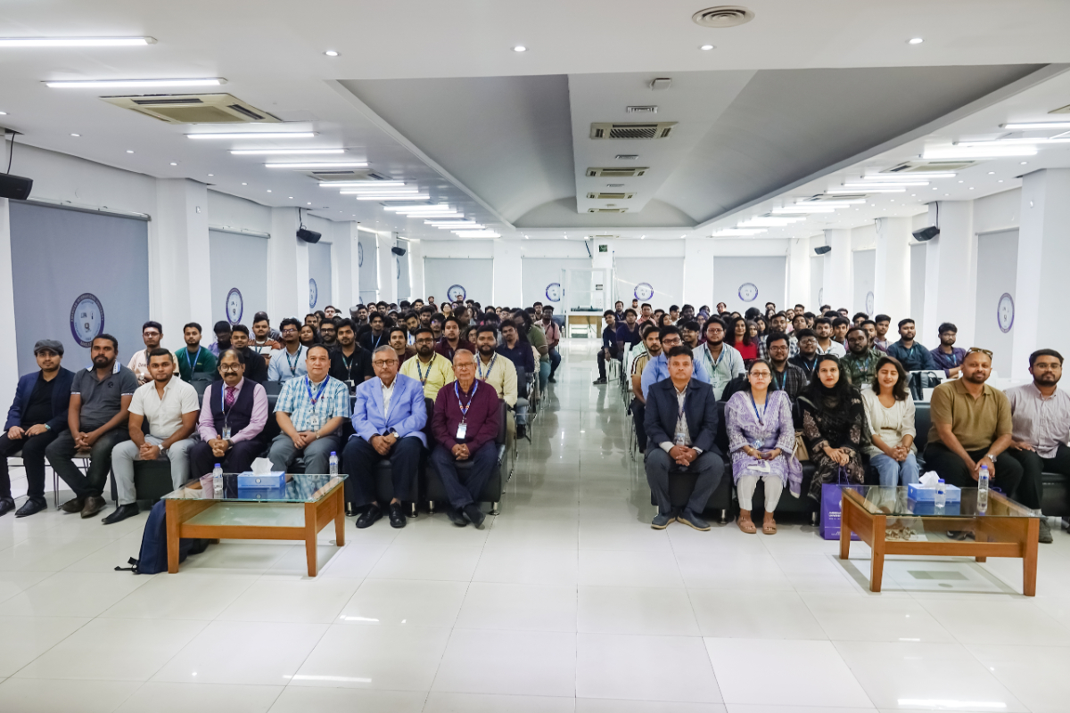 The core of the seminar centered on the personal and professional experiences of the esteemed panel members, who each offered unique and compelling narratives of their success. Mr. Tasvir A. Faheem, drawing from his winning journey at the Grameenphone Accelerator, shared how he and his team were able to secure significant national and international funding for their ventures. He emphasized a pragmatic approach, strongly advising aspiring entrepreneurs to work in a corporate or business organization for a few years before embarking on their own entrepreneurial journey. He provided the audience with a foundation of essential skills and a deeper understanding of market dynamics. Ms. Nurunnassa (Nasim) captivated the audience with her heartfelt account of being a female entrepreneur in Bangladesh’s challenging yet rewarding ecosystem. She spoke candidly about the unique obstacles she overcame and the triumphs that followed, offering a message of resilience and empowerment. Mr. Sayed Zubaer Hasan provided a deep dive into the critical concept of achieving product-market fit. He explained the iterative process of listening to customer feedback, adapting the product, and finding the right niche. He highlighted the vast opportunities that await students who possess the right skills, urging them to