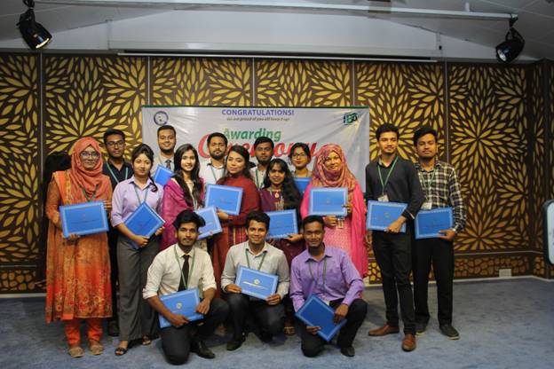 Another semester of shining moment unfolds for the Faculty of Business Administration (FBA) as the DEAN LIST and HONORABLE MENTION’S LIST received their Certificate of Excellence Award during the Awarding Ceremony held in the Media Studio of the University. A total of 151 students of which 83 are BBA; 59 are MBA and 9 EMBA. The program was opened by the Dean of the Faculty of Business Administration, Prof. Dr. Charles C. Villanueva with is inspiring and challenging message to the awardees. He underscored the importance to possess character traits to ensure success in their career. The need to sharpen their skills on the discipline they have chosen and the right attitude and behavior to make them socially and academically balanced. He emphasized humility and courage among other traits that students should demonstrate and practice for their success in life and career. On hand to provide inspiration to the awardees are the two Program Directors of FBA, Ms. Farheen Hassan, Prof. Dr. Nisar Ahmed and some faculty members. Excitement is in the air as the Emcee starts to call the names of the awardees to receive their individual Certificates. An inspiring response was delivered by an awardee from MBA which was followed by a closing message of Prof. Dr. Nisar Director Graduate Program. Ms Kishwar Choudhury and Mr. Tareque Moudud, Director, Office of Placement and Alumni served as the Masters of Ceremonies.
