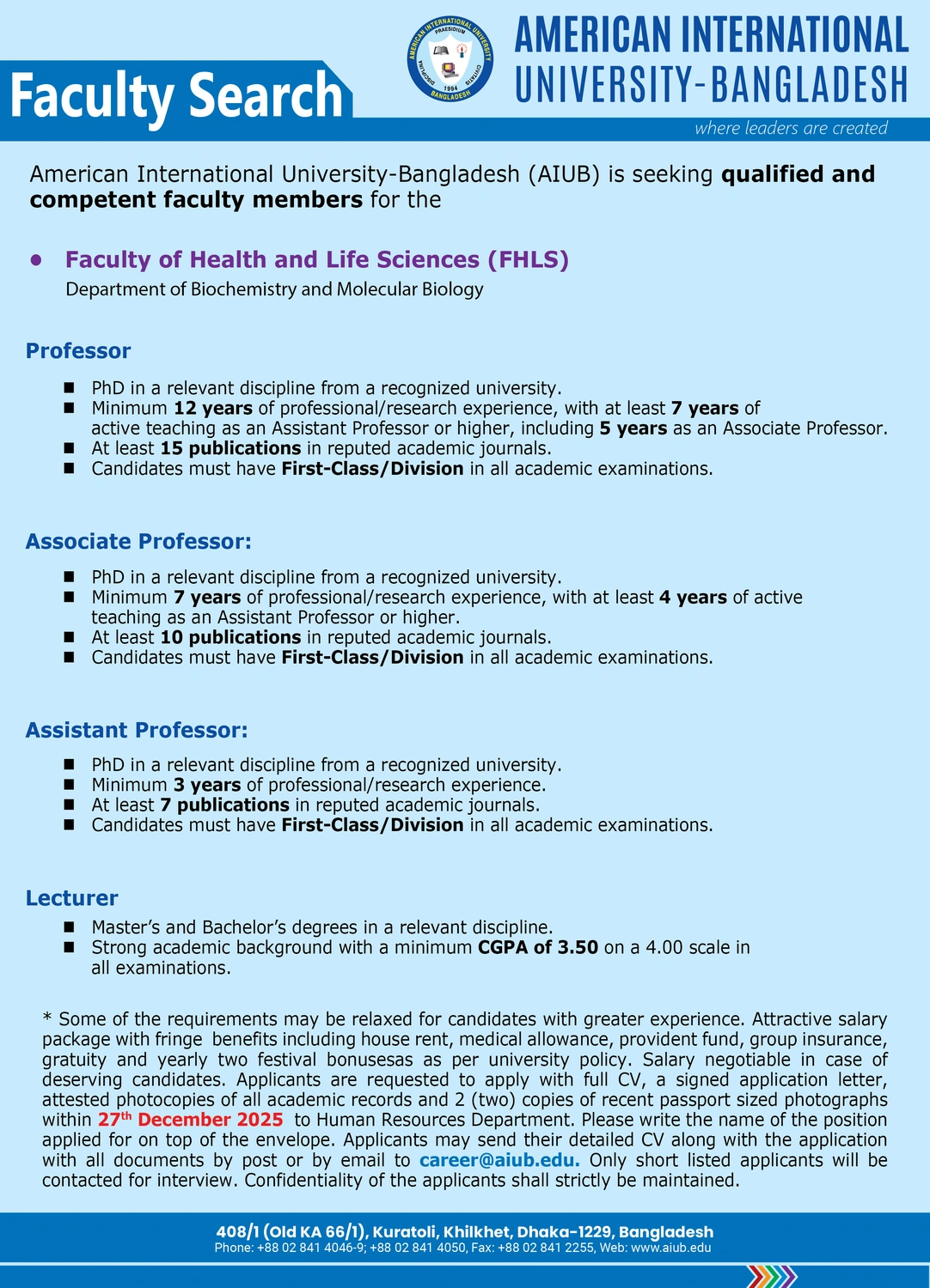 Faculty Search [Biochemistry and Molecular Biology] [November 28, 2025]