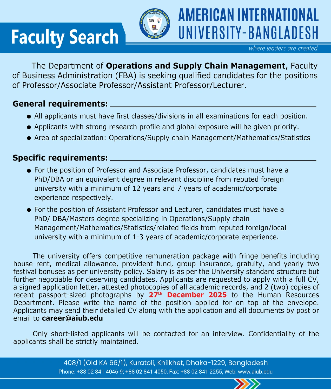 Faculty Search [Operations and Supply Chain Management] [November 28, 2025]