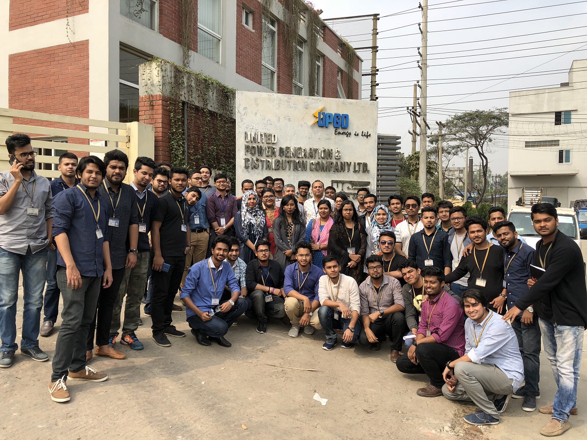 On February 10, 2018, AIUB Community of Engineering Students (ACES) organized an Industrial tour to United Power Generation and Distribution Company Ltd (UPGDCL) which is located at Ganakbari, Savar, Dhaka. It is a gas based power plant with the total capacity of 88 MW consisting of 12 engines (4 Wärtsilä engines each having a capacity of 8.73 MW, 5 Rolls-Royce engines each having a capacity of 9.34 MW and 3 MTU engines each having a capacity of 1.95 MW) and 3 power transformers in sub-station. The principle activity of the company is associated with the generation and distribution of electricity throughout Bangladesh both on grid and island mode. It was a one-day tour which involved the participation of 46 students and 4 faculty members of American International University-Bangladesh (AIUB). The team departed at 9 a.m. and reached the power plant at around 10:30 a.m.