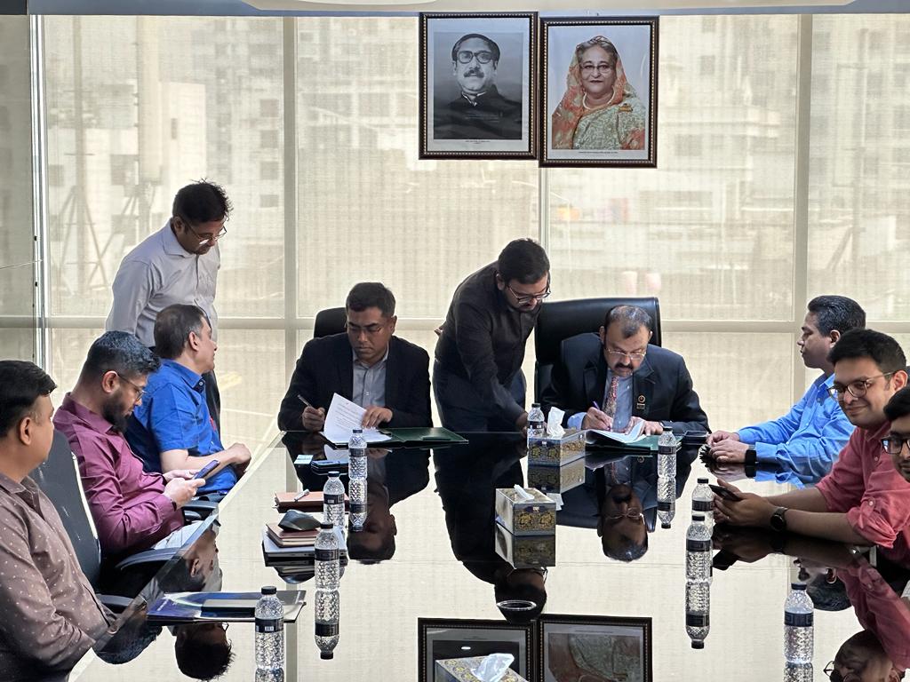 The gathering was also graced by the esteemed Mr. Chowdhury Akram Hossain, Deputy Director of D2A2I; Dr. M. Tanseer Ali, Associate Professor in the Faculty of Engineering at AIUB; Mr. Abir Ahmed, Assistant Professor in the Faculty of Engineering at AIUB; Mr. Tanvir Ahmed, Lecturer in the Department of Computer Science at AIUB; Mr. Sabbir Hossain, the Software Developer designated for the TRP Project; and Mr. Md. Sarwar e Alam Sarker, also a Software Developer devoted to the TRP Project. On behalf of BSCL, the distinguished gathering featured Mr. Md. Rafiqul Haque, Company Secretary; Mr. Shah Ahmedul Kabir, General Manager (Sales and Marketing); Mr. Bakhtiar Ahmed, Assistant General Manager, Planning and Development; Mr. S. M. Anwarul Aziz, Senior Manager, Customer Service; Mr. Md. Shafiul Azam, Manager of Broadcast, Media, and Promotion; Mr. Md. Muntasirur Rahman, Manager, Mission Engineer; Ms. Rehenuma Tarannum, the Manager, Procurement (Additional Charge); and Mr. Md. Arafin Mahamud, Assistant Manager, Ground Station Maintenance, among others, who graced the ceremony.