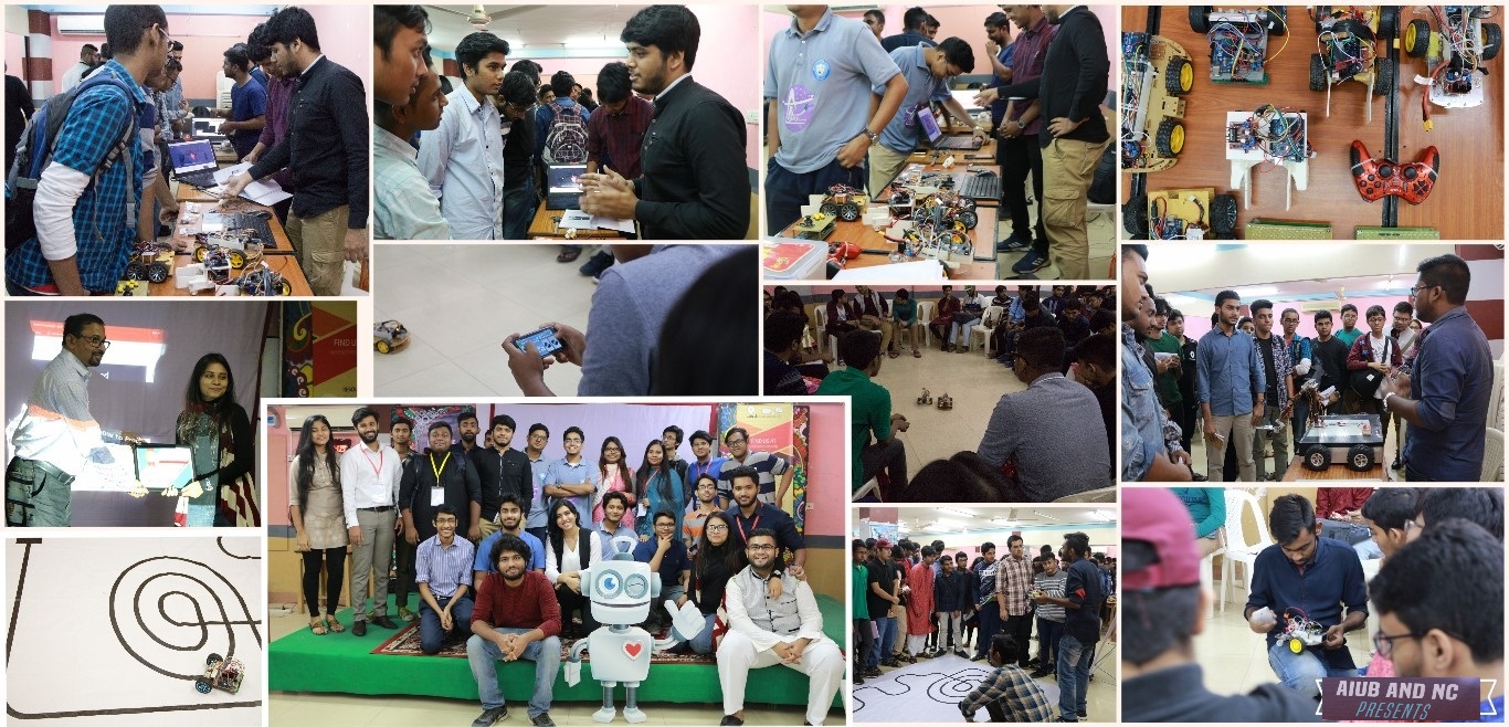 A Robotics Workshop was held at Academia (Lalmatia) on 24th of November, 2017, organized by AIUB and Nerd Community. The event was presented as an educational outreach program aimed at introducing the basics of robotics to high school students in order to help them gain insight into the progressive demands for robotics technology, and also to encourage them to participate in international competitions. The program highlighted on the success of AIUB Robotic Crew's endeavors at University Rover Challenge (URC) in the years 2016 and 2017, as well as at NASA Human Exploration Rover Challenge-2017. The audience engaged enthusiastically with the speakers from the event, Md. Mahfuzur Rahman, Sabab Iqbal, Miftah Mahmood, Nagib Mahfuz and Sauda Musharrat, as they spoke about their journey through URC as AIUB Robotic Crew member. High school students in the workshop were also able to interact with students from the EEE & CoE department of AIUB who presented their remarkable engineering projects for showcasing. One of the key attractions for this event was to let the high school students get hands-on experience constructing a basic soccer robot with the assistance of the current AIUB Robotic Crew team. The effort and contribution from the organizers, Nerd Community, made sure the participants thoroughly enjoyed the event. Nerd Community is a student entity, being the first of its kind in Bangladesh, operating as a platform that caters to all academic and career queries from students. Nerd Community helps students transition from what they are to what they can be (www.nerdcommunity.org). Special appreciations go to the venue partner, Academia, for facilitating AIUB and Nerd Community to sponsor this event. The event was graced with the presence of special guests, Md. Kutub Uddin (Managing Director, Academia) and Mr. Shimanto Chowdhury (Project Engineering Manager, Institute of Information and Communication Technology, BUET). Also in attendance from the AIUB Faculty of Engineering were Mr. Chowdhury Akram Hossain (Senior Assistant Professor, Faculty of Engineering and Special Assistant, Office of Student Affairs) and Mr. Ebad Zahir (Senior Assistant Professor and Special Assistant, Dept of EEE & CoE).