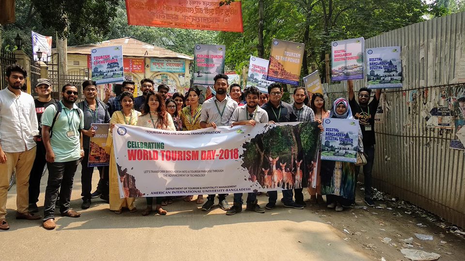 On 27th of September Department of THM & Marketing celebrates World Tourism Day – 2018 with the theme: ‘Tourism and the Digital Transformation’ as declared by World Tourism Organization (UNWTO). Students of Tourism and Hospitality Management Course gathered in front of famous Madhur Canteen of Dhaka University and held a celebration rally. World Tourism Day 2018 was a unique opportunity to raise awareness on the potential contribution of digital technologies to sustainable tourism development, while providing a platform for investment, partnerships and collaboration towards a more responsible and inclusive tourism sector. It was a memorable and successful tour for the THM students as it provides the opportunity to interact with other universities, tourism partners and local government agencies. This tour was organized and coordinated by the course teachers Asst. Prof. Sabrina Rahman and Lecturer Mahmudul Hasan. This awareness trip also received great support from BBA Director MS Farheen Hassan and Head of Marketing and THM department Dr. Khondaker Sazzadul Karim.