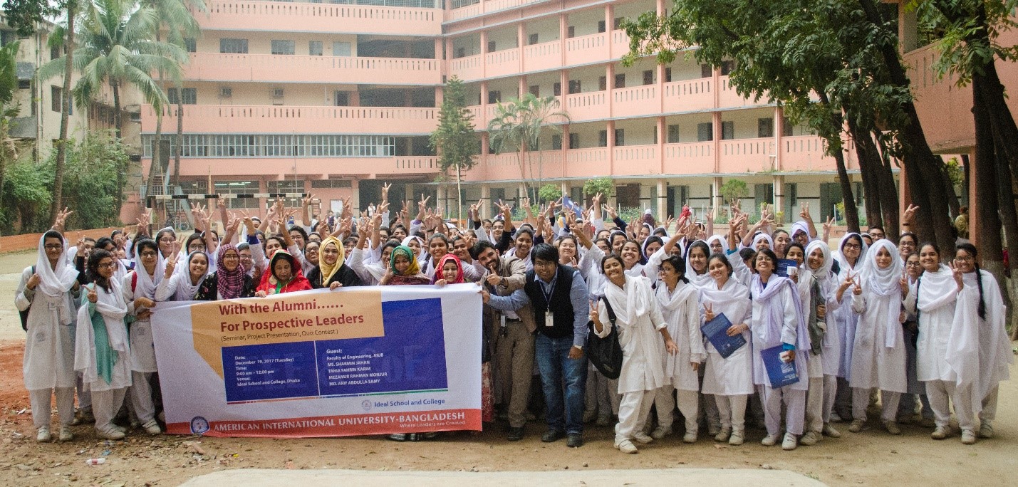 “Give me an educated mother, I shall promise you the birth of a civilized, educated nation”- Napoleon quotes. With this vision, on December 19, 2017 Department of Electrical and Electronic Engineering (EEE) and Computer Engineering (CoE) of American International University-Bangladesh (AIUB) organized an outreach program in College section of Motijheel Ideal School & College, with the development of their social responsibility. The vision of the program was to empower women with higher education, to encourage female students to study further after H.S.C level. Again, active participation of female students in Engineering education is very low in our country, as most of them fear that engineering is not suitable for them. To inspire them to study engineering, Ms. Sharmin Jahan, Assistant Professor, Department of EEE & CoE; Alumni, Motijheel Ideal School & College, shared her experience of academic life in Engineering study and her career as an Engineer. She showed the students a pathway of success by accepting engineering education and motivated them for engineering education. The female students were enthusiastic to have alumni like her among them. Then, Mohammad Abdullah Al Mamun Student, Department of EEE, AIUB exhibited his project to the students to let them know how they can make an impact on the society by implementing their engineering knowledge, which drew their attention quite positively. Moreover, a quiz contest was conducted by Ms. Tahia Fahrin Karim Assistant Professor, Department of EEE & CoE to make the program a joyful one. The winners of the quiz contest were awarded prizes. At the end, a closing speech was given by Dr. Shahan Ara Begum Principal, Motijheel Ideal School & College. The whole program was managed by Mr. Mezanur Rahman Monjur Lecturer, Department of EEE & CoE and Mr. Md. Arif Abdulla Samy Assistant Professor, Department of EEE & CoE. Thanks to Ms. Rezina Jesmeen, Ms. Farzana Bari, Ms. Munira Dilshad and Ms. Razia, Faculty member of Ideal School & College for co-operating to conduct the program successfully.