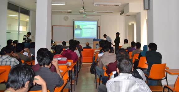 The target of the seminar was EEE and CSE undergraduate and graduate students who wish to enter the semiconductor industry as hardware design engineer. The presentation focused on VLSI industry design flow including Front-End and Back-End Top-Down Design Flow for Application Specific Integrated Circuits (ASIC), practices and career fields. It walked the audience through step by step activity from chip design specification to Register Transfer Level (RTL) design with Hardware Description Languages (HDL) (i.e. Verilog HDL, VHDL, SystemVerilog) to RTL/Logic Synthesis to all the way how Physical Layout (chip layout) is generated for IC fabrication. Students were also treated to a detailed explanation on the background needed and skills required to take advantage of the career opportunities available in this diverse field. In the end a question and answer session was held to address the various queries and concerns of the audience.