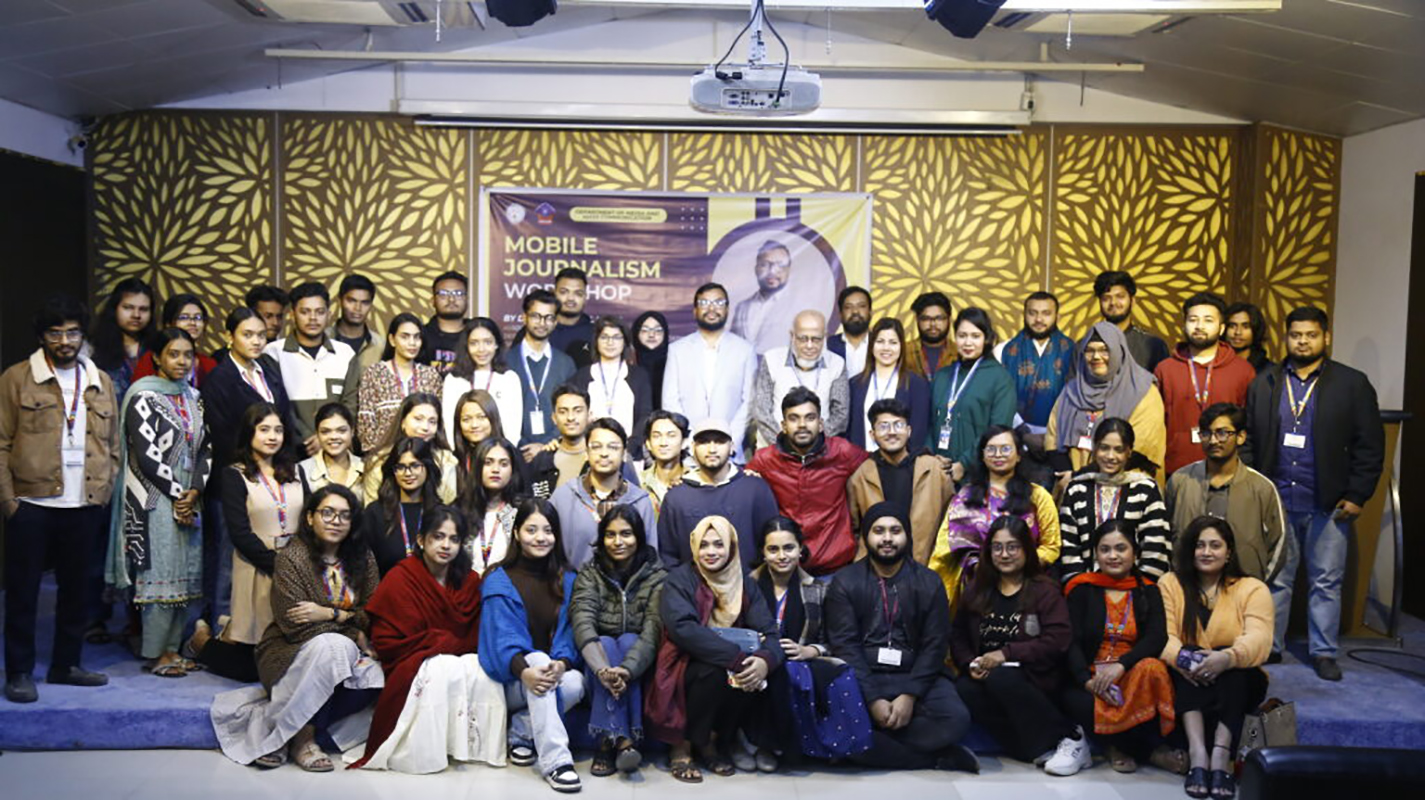 The Department of Media and Mass Communication (MMC) at the American International University-Bangladesh (AIUB) organized an inspiring Mobile Journalism Workshop on Wednesday, January 8, 2025, at the Media Studio, Annex 2. The event ran from 11:00 AM to 1:00 PM and provided a hands-on learning experience for aspiring journalists on how to effectively use mobile phones for storytelling in journalism.