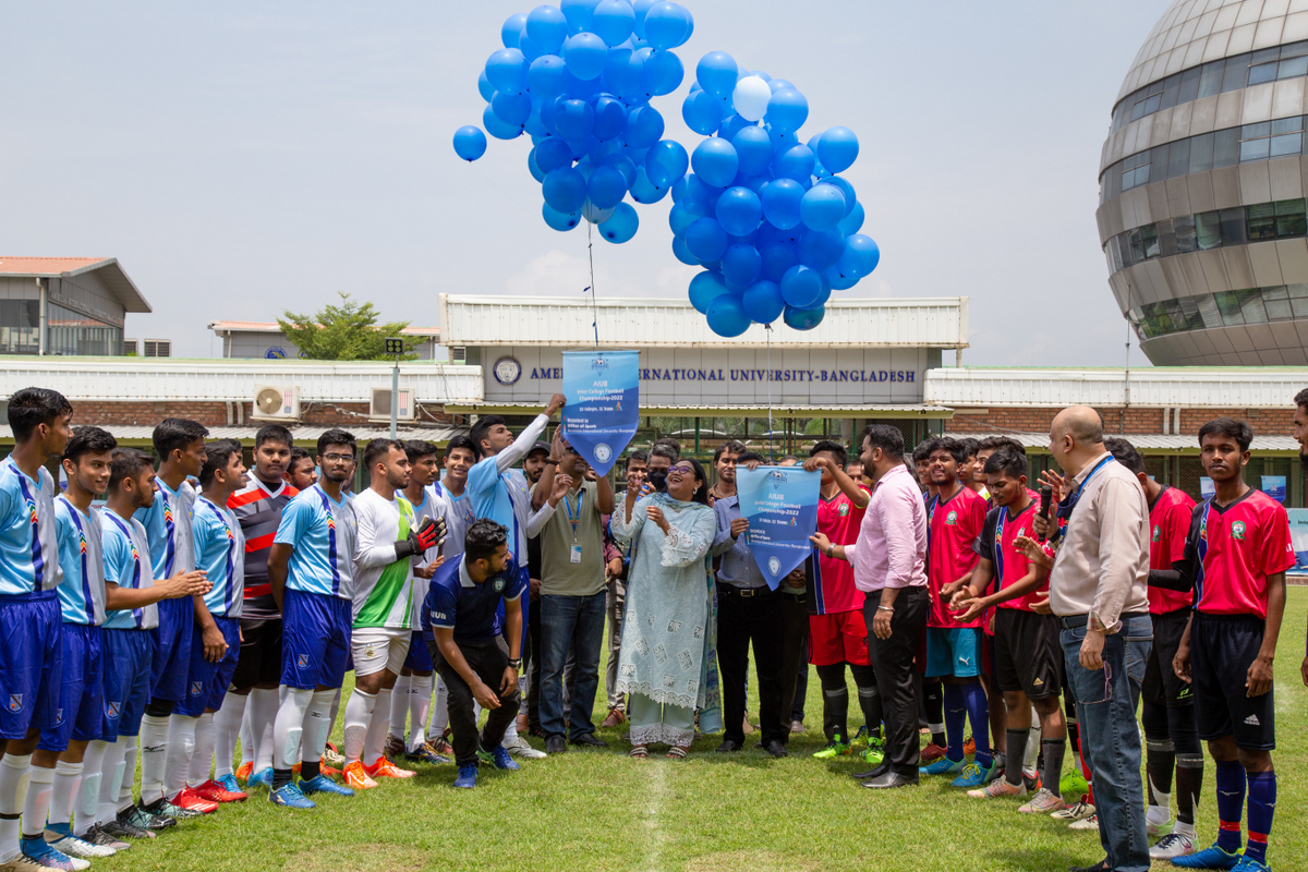 The AIUB Inter College Football Championship 2022 has been inaugurated at the Sports Filed of the American International University – Bangladesh (AIUB) on Monday, August 22, 2022. Mrs. Nadia Anwar, Founder and Member, Board of Trustees of AIUB inaugurated the event in presence of Faculty Members, others Administrative Officials of AIUB and representatives of Participated Institutions. The Championship 2022 is organized by the Office of Sports of AIUB. 32 colleges of Dhaka city are taking part in this championship tournament.