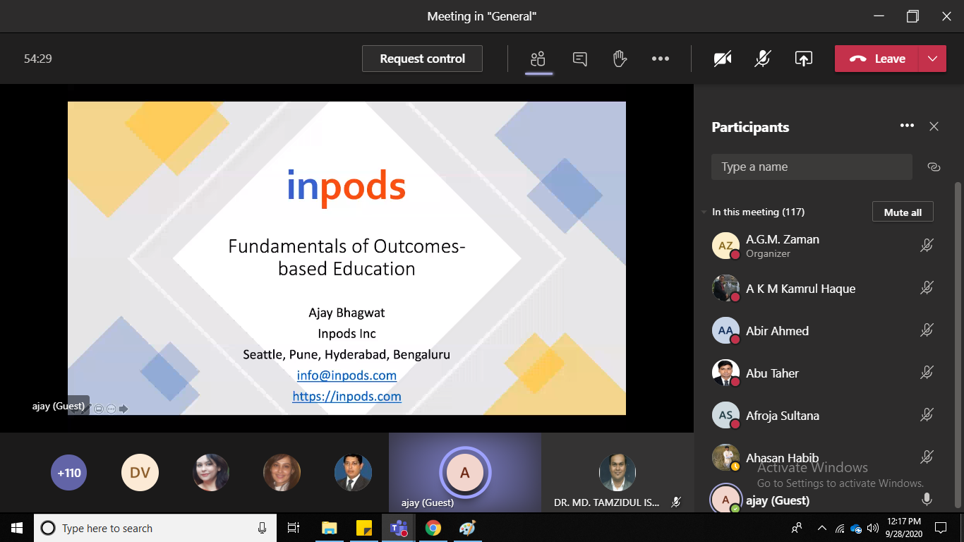 From 28 September to 30 September 2020, AIUB-IQAC organized a Three-day Faculty Development Program on Outcome-Based Education with Mr. Ajay Bhagwat, Director, Inpods India as the resource person for this event. This Faculty Development Program (FDP) covered key issues and aspects in the area of Outcome-Based Education (OBE). This is a timely intervention in the light of AIUB’s preparation for the program accreditation to be conducted by the Bangladesh Accreditation Council (BAC). While this program has already been introduced in the university, a couple of times, the program comes as a refresher to enhance the faculty’s functional understanding of the approach.