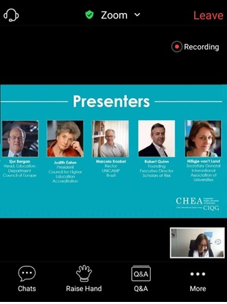 Both of the webinars were coordinated by Judith S. Eaton, President, Council for Higher Education. She also welcomed Cynthia Jackson-Hammond, the new President of CHEA.