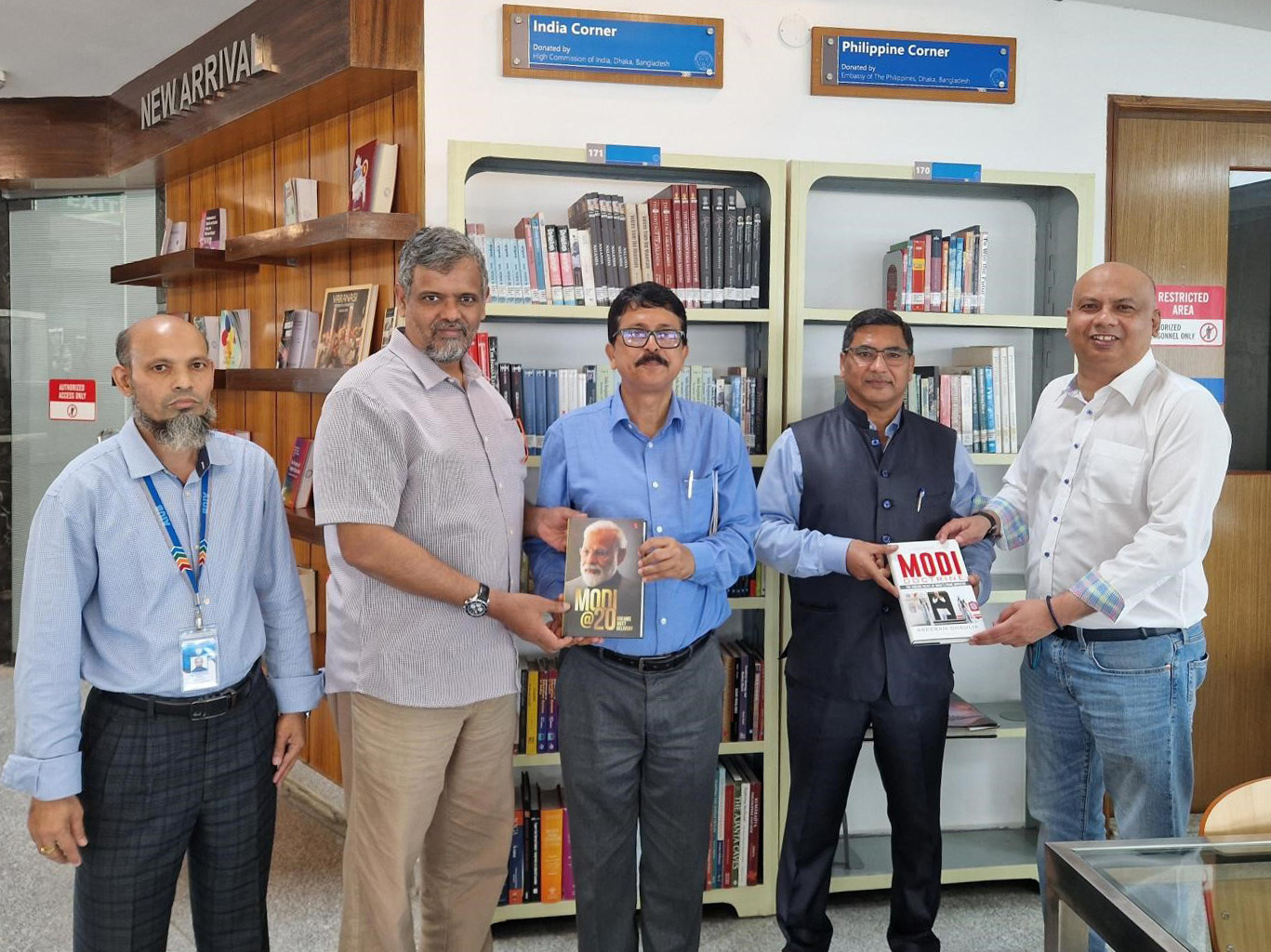 AIUB Library received generous donation of 101 new books from the Indira Gandhi Cultural Centre (IGCC), High Commission of India on 30 August 2023. On behalf of the IGCC and High Commission of India, the Director of IGCC Mr. Mrinmoy Chakraborty and Mr. Sanjay Kumar Bihani, Second Secretary (Consular) handed over the books to Gp. Capt. (retd) Dr. Mohammad Zahidul Islam Khan (acsc, psc), Registrar and Mr. Manzur H Khan, Proctor, AIUB. The selection and quality of the books are varied, impressive and rich. They are now on display at the India Corder of the AIUB library and are open for the students, faculty, and officials to read. AIUB Management expresses deep appreciation and gratitude for such noble donation.