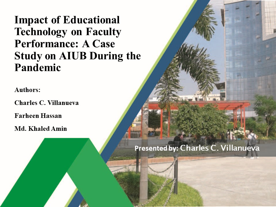 The Conference was organized by the University of South Florida, USA and arranged virtually. The conference received 360 submissions from 36 countries. After a double-blind, peer-review process, the conference accepted 184 papers from 650+ authors. The Paper of AIUB highlighted the timely initiatives taken by the management to respond to the challenges brought about by the COVID 19. The work also augments the effective use of performance matrixes designed by the Faculty of Business (FBA) to measure faculty performance in the context of a pre pandemic traditional and pandemic online educational settings. Prof. Dr. Charles C. Villanueva, Vice President Academic and Dean, FBA, AIUB, is the lead researcher author of the paper and privileged to present the said paper during the Conference held on 8 June 2021 on behalf of the two other authors Ms. Farheen Hassan, Director, BBA Program and Md. Khaled Amin, Asst. Prof. FBA, AIUB. The paper is a baseline study to gauge whether there was a statistically significant change in faculty members’ overall performance during the pre pandemic time and the pandemic online which was measured using three instruments such as: Teacher Performance Evaluation (TPE) by the students, the Faculty Performance Evaluation (FPE) as self evaluation and by the management using the same FPE instrument. The study revealed that there is a significant difference in the performance of the faculty as measured by the TPE comparinmg the results during the two settings. On the other hand, there is no difference in the self evaluation of the faculty and that of the management. As future direction, the study proposes to expand the number of respondents to cover other departments of FE, FASS and FST, and longer time coverage. It might be of interest to have an in depth analysis of the data and arrive at a more meaningful results some factors maybe included so the performance of the teachers can be made more understandable as inputs for faculty development program and management action.