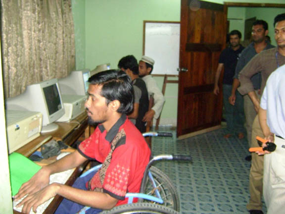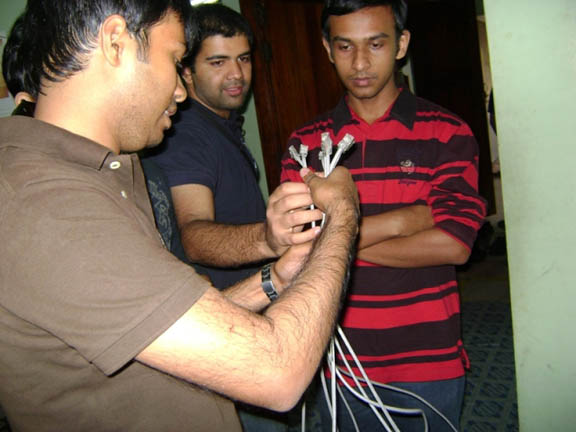 As part of the community outreach program, on March 12, 2009, a team of AIUB Cisco Networking Regional Academy comprising of students and instructors lead by Asst. Prof. Md. Manirul Islam, Coordinator of the Continuing Education Center, at the American International University Bangladesh, and the Quality Assurance Support Specialist for Cisco in Bangladesh, visited the Center for the Rehabilitation of the Paralyzed (CRP), at Chapain in Savar. The AIUB Team set up the Local Area Network (LAN) of the center voluntarily and distributed clothes to the needy people afterwards.