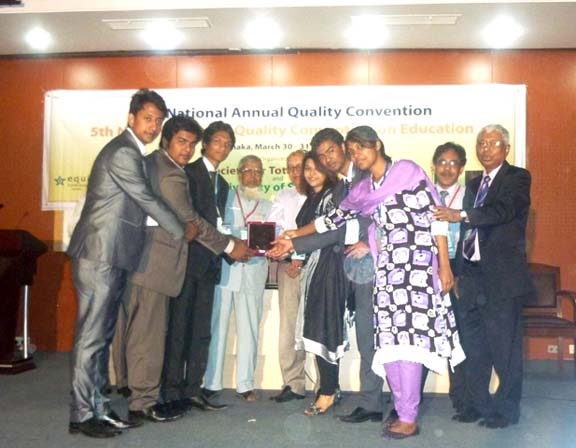While Ms. Shaila Ahmed presented an important paper on “Teaching English in Large and Under-Resourced Classrooms”, her students of Section A4 did their presentation on “Environmental Pollution”. The lively, informative presentation was widely acclaimed by all. The group was later awarded with certificates and crests.