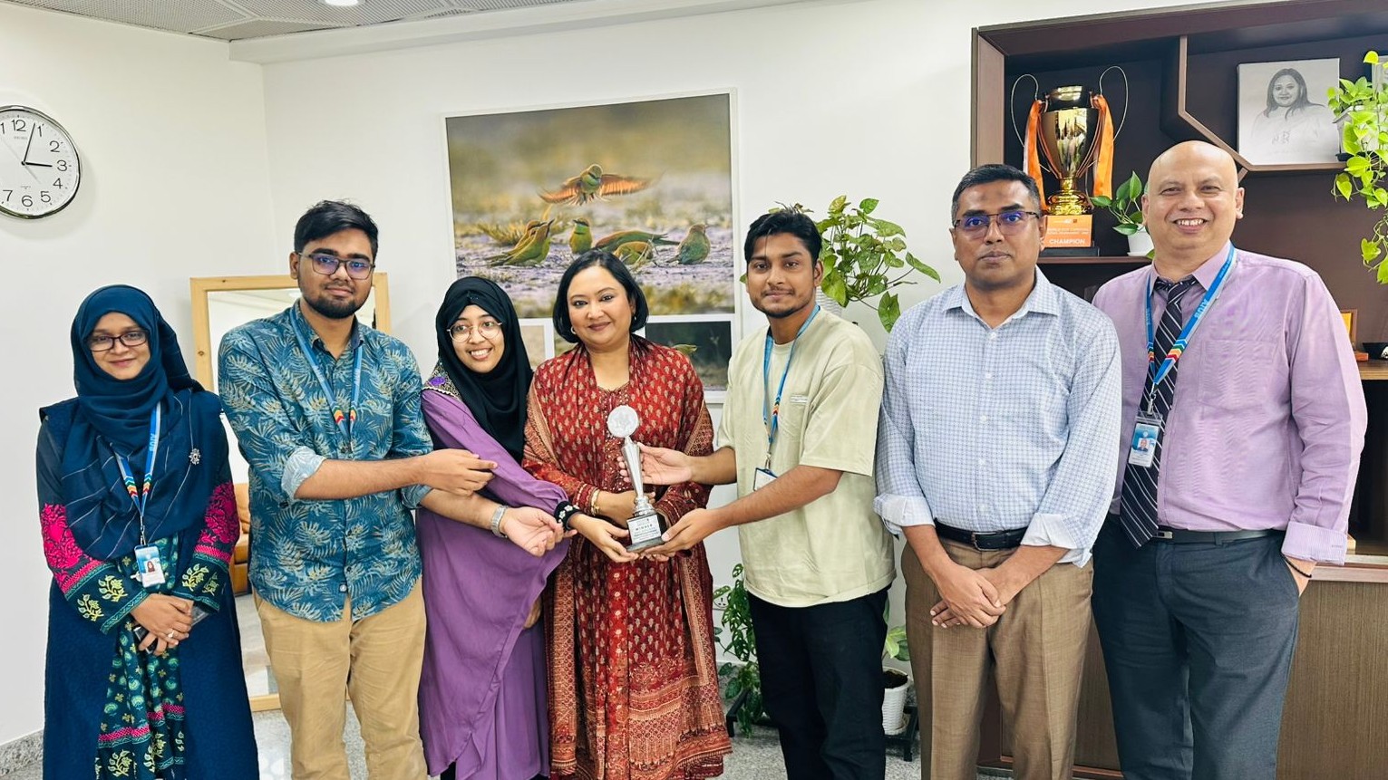 A student team Tech Wing - comprising of Kiyas Mahmud, Md. Maruf Hossain Munna and Syeda Shakira Akter — from the Department of Computer Science, American International University-Bangladesh (AIUB), has been honored with an Award in the “Business Services” category (Student Division) at the Bangladesh ICT and Innovation Awards 2025 for their project “Hybrid Fraud Shield”.