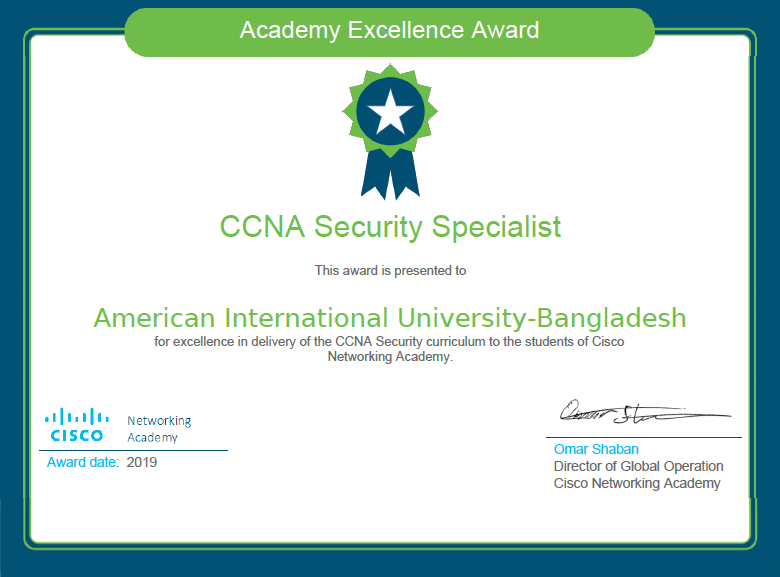 American International University-Bangladesh has received the prestigious Academic Excellence Award from Cisco