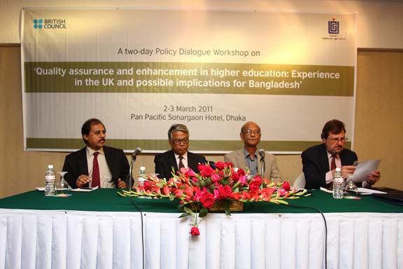 The British Council Bangladesh and The University Grants Commission extended invitation to the university for participation in the Seminar on “Quality Assurance and Enhancement in Higher Education: Experience in the UK and Possible Implications for Bangladesh” held on March 2, 2011 at the Pan Pacific Sonargaon Hotel, Dhaka, Bangladesh. Project INSPIRE ( International Strategic Partnerships in Research and Education) is a British Council Funded project sponsored the seminar which was participated in by the Vice Chancellors and other Senior officials of both the private and public universities. Dr. Robert William Munn, Professor Emeritus of Chemical Physics, University of Manchester, United Kingdom designed and delivered the workshop as consultant. The Honorable Mr. Nurul Islam Nahid, MP, Honorable Minister, Ministry of Education, Government of the People’s Republic of Bangladesh has kindly consented to be the Chief Guest and inaugurated the workshop and Prof. Nazrul Islam, Chairman, University Grants Commission of Bangladesh presided over the session. The AIUB participants to the seminar were Prof. Dr. Charles C. Villanueva, Dean, Faculty of Business Administration and overall coordinator AQAC, Mr. Bikash Barua, Asst. Professor and Member of the AQAC and Ms. Afroza Nahar, Asst. Professor and also Member of the AQAC. The seminar has provided additional insights, dimensions and experience in quality assurance.