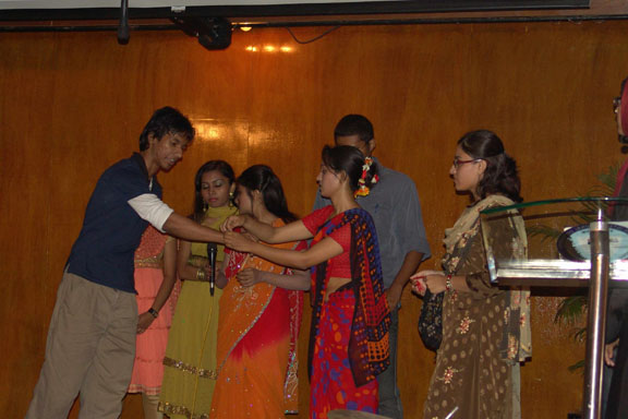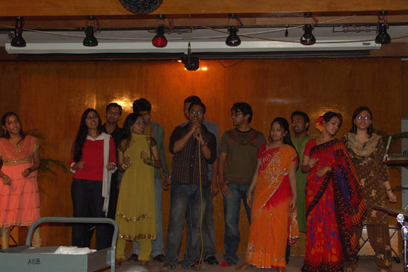 Students and faculties from Department of Architecture, AIUB shared a splendid evening with freshmen enrolled for Spring 2009 on 17th Feb Tuesday at the AIUB auditorium. The department was privileged to have Honorable Vice-President of Academic Affairs and Dean Prof. Dr. T. Hossain, Honorable Pro-vice chancellor Prof. Dr. Anwar Hossain, Honorable Associate Dean Prof. Dr. Hasan Imtiaz Chowdhury, the Head of Architecture Department Prof. Dr. Salehuddin, and Coordinator of Architecture Mr. Arefeen Ibrahim. The event was staged in two parts. In the first part senior students performed in a vivid cultural show dedicated to the new comers. The freshmen of the AIUB architecture were received with wrist-bands by their elder ones. This was followed by refreshment.