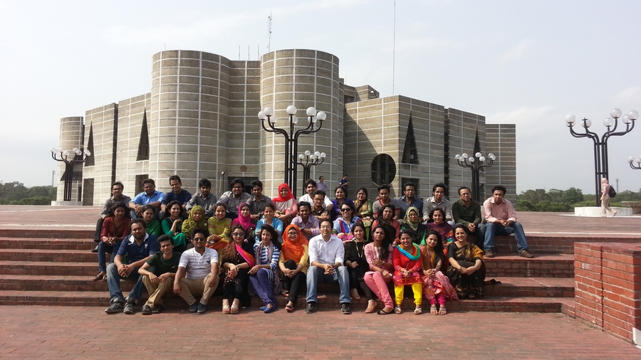 The class of Design Studio X with faculty members including their Studio Guides Ashik Vaskor Mannan, Hasan Ahmed Chowdury and Head of Architecture Department M. Arefeen Ibrahim made a trip to National Parliament Building, at Sher-e-Bangla Nagar, Dhaka on Thursday, April 23, 2015. The trip also marks their official last day of class as undergraduate students. After successful completion of their Thesis Jury this group of students will become professional architects. What other than a trip to this magnificent architectural masterpiece would have left their hearts filled with cherished exclusive memories of the last day!