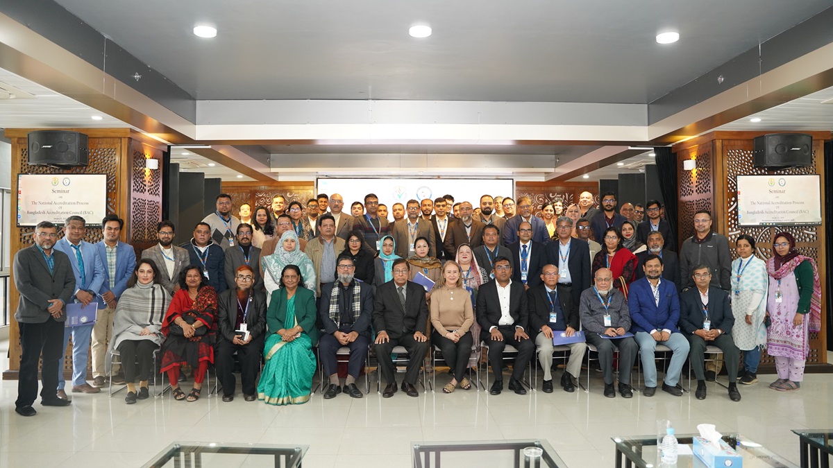 The seminar was the ice-breaking session for the accreditation process. Honorable BAC chairman and members exchanged views and details on the accreditation procedure with Quality Assurance Committee (QAC), Faculty Quality Assurance Committee (FQAC), Program Self-assessment Committee (PSAC) Administrative staff of AIUB. The participants of the seminar discussed the Bangladesh National Qualifications Framework (BNQF) and 10 criteria of the BAC accreditation procedure. Professor Dr. S. M. Kabir talked about the documentation process for accreditation and Professor Dr. Mesbahuddin Ahmed provided guidance on how to fulfill the steps for accreditation. Dr. Carmen Z. Lamagna and Prof. Dr. Md. Abdur Rahman thanked BAC for visiting and guiding us on the national accreditation process and assured that the rest of the programs will be applying for BAC accreditation very soon. Deans, Directors, Departments Heads, IQAC team and administrative personnel attended the event.