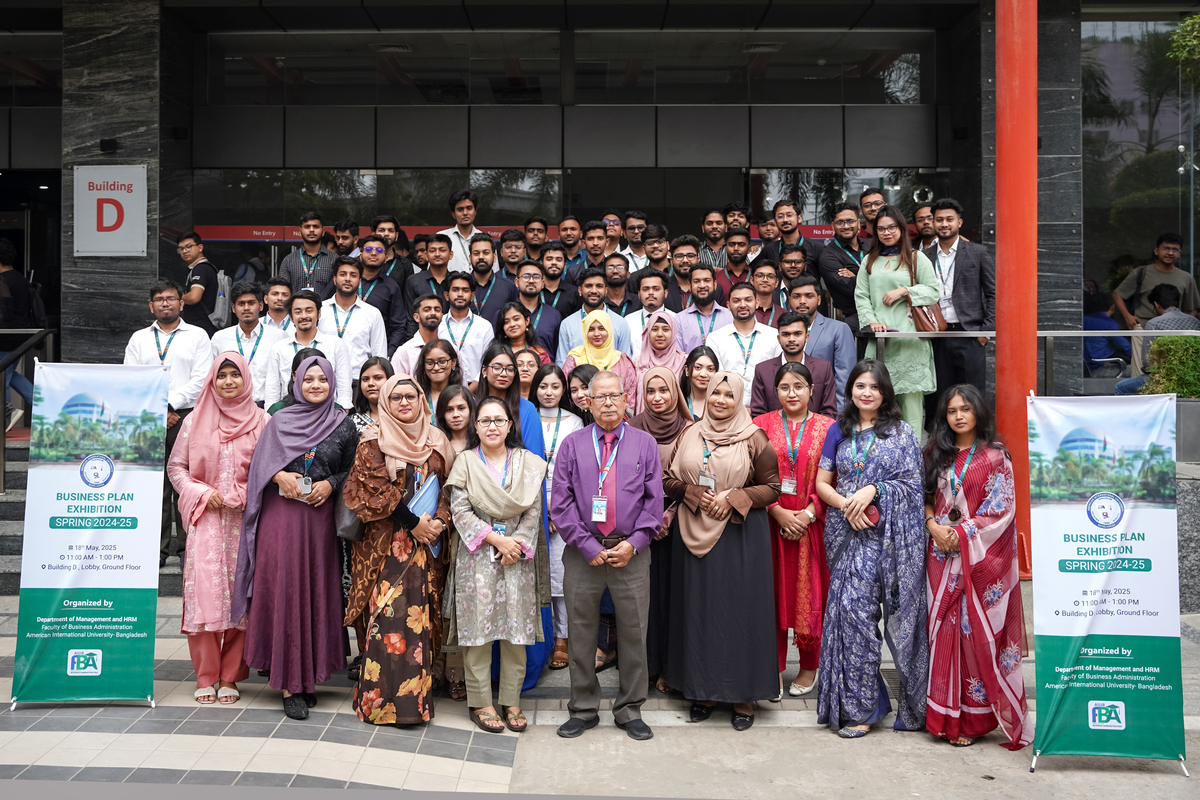On Sunday, May 18, 2025, from 11:00 AM to 1:00 PM, the Department of Management, Faculty of Business Administration, organized the “Business Plan Exhibition Spring 2024-25” at Building D, Ground Floor Lobby, AIUB. The exhibition was formally inaugurated by Prof. Dr. Anwar Hossain, Advisor and Dean-In-Charge, Faculty of Business Administration, American International University-Bangladesh. Prof. Dr. Anwar Hossain along with Dr. Rezbin Nahar, Director of the BBA Program, and Dr. Md. Aftab Anwar, Head Department of Management & HRM, Dr. Partha Prasad Chowdhury, Head Department of Marketing, Obaidul Islam, [Sr.], Associate Professor, visited the exhibition and judged the feasibility of the business ideas developed by the Entrepreneurship Development Course students. The event seeks to accomplish the Sustainable Development Goals (SDGs) of Industry, Innovation, and Infrastructure in addition to providing excellent education. Exhibitions of business plans happen once a semester in the Management Department of the Faculty of Business Administration. These are the most creative and feasible business concepts developed by groups of students enrolled in the Entrepreneurship Development course. The event's goal is to provide students with an opportunity to showcase their own original business concepts to industry professionals and educated academics, seeking their feedback on how to improve and make them more viable. Without the organized efforts of the pertinent teachers and students, supported by AIUB Administration, the event would not have been possible. The top projects received awards from the academic assessors following the display. The exhibition was organized by Samia Shabnaz, Senior Assistant Professor, Department of Management. Public access to the show lasted until 3:30 P.M.