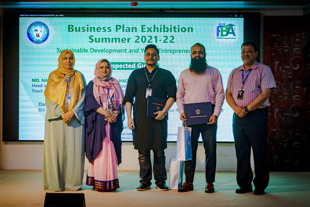 The respected guests along with the faculty members visited the exhibition and evaluated the business plans developed by the students. The presentation skill and nicely crafted posters and models of the projects were highly appreciated by the spectators. The exhibition was only possible because of the spontaneous hard work of the respective teachers and students along with the support provided from AIUB Management. The kind participation of the distinguished guests was greatly inspiring for all the students. After the exhibition, the best projects were selected by the academic and corporate experts and awarded with certificates.