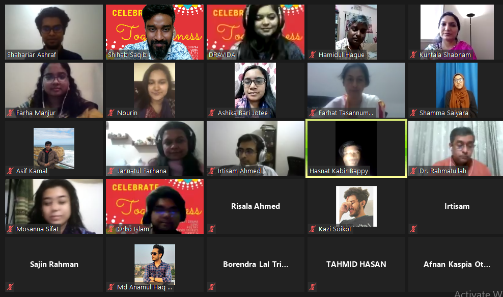 Department of English, AIUB organized a cultural program titled "Celebrate Togetherness” on a virtual platform on 4th April 2021. In the current situation of fear and awe of COVID 19, this dynamic initiative of the Department of English, is really praiseworthy. The faculties and students of the department have long been feeling deprived of satiating their cultural cravings. For a long time, they have been preparing themselves with their innovative cultural ideas and practices to share with each other through a virtual platform like this. In the evening of 4th April, the students and teachers of the department of English, availed themselves of this long awaited opportunity of holding a cultural get-together. Both the faculties and students performed on the occasion.