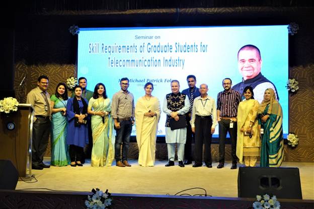 The Chief Executive Officer (CEO) of Grameenphone, Mr. Michael Patrick Foley delivered a lecture ON SKILL REQUIREMENTS OF GRADUATE STUDENTS FOR TELECOMMUNICATION INDUSTRY with the Marketing and EEE students, faculty and management of AIUB . The telecommunication industry is undoubtedly one of the fastest growing industries that boost the economy of Bangladesh. The speaker is truly a person in authority when it comes to telecommunication industry for he has worked in various parts of the world before being assigned in Bangladesh. It was an opportune time for the students to learn from this learned and experienced person considering that the university is offering courses relative to telecommunication and business. Right from the horse’s mouth, so to speak, the students were oriented what exactly are the skills needed by the telecommunication industry so that Faculty can prepare the students to acquire these skills and able to respond to the industry’s requirements. These skills cover the following areas like social skills networking capital, technical adaptability needed by the industry’s growth and development, marketing ability to promote the transfer of these skills and others. It was a very interesting and informative discussion which motivated students to raise some questions out of their curiosity. Mr. Foley was also ushered by the organizers to view the library and the other facilities of the university. He was delighted and impressed of the modern library. The seminar was an initiative of the Marketing Department of the Faculty of Business Administration.