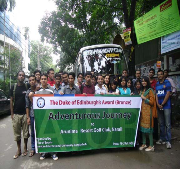 The Duke of Edinburgh (DEA) Adventurous Journey was held from 19th July, 2012 to 21st July, 2012 at Narail. 25 students from AIUB (Bronze Participants) participated in the adventurous journey which is a requirement for the award. The students were accompanied and supervised by Mrs. Farheen Hasan and Mr. Joynal Abedin teachers of the Faculty of Business Administration of AIUB. In this tour, the participants conducted a health survey on the rural people and made health awareness campaign in that particular area. Participants also arranged a cultural program, camp-fire and some team discussions. They observed the rural activities by a 2 km walk at Pani-Para in Narail. All the programs were coordinated and organized by Mr. Abdul Kader Nazmul, DEA Award Coordinator and Award Leader at AIUB.
