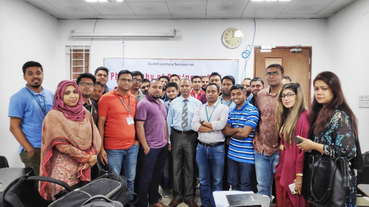 MD. Nazmul Haque, ppm, Addl. IG, Bangladesh Police was the guest lecturer in this session. Mr. Haque started his career as ASP since 1986 and later joined Investigation Agency, ICT in 2015. He has completed lots of training courses in home and abroad. He has also attended various seminar and conferences as speakers and key note speakers. Mr. Haque served in three UN Missions and received medals for outstanding performance. Most importantly, he was awarded President Police Medal PPM (National Award) for arresting Ershad Shikdar. Mr. Haque is a Freedom Fighter. He received training in Tejpur Cantonment, India and took active part in Sector No: 2. As a part time faculty, he taught Forensic Science in the MSS (Criminology and Criminal Justice) program, Department of Sociology, University of Dhaka as well as different private universities. Mr. Haque conducted an elaborate session on “Philosophy of Business Ethics” specially focuses on the philosophy behind Ethics, nature of ethics, necessity and implementation of ethics etc. The interactive session comprising of various experiences sharing between the Guest Lecturer and the students especially effective in facilitating a better understanding on ethics & ethical values essential for business.