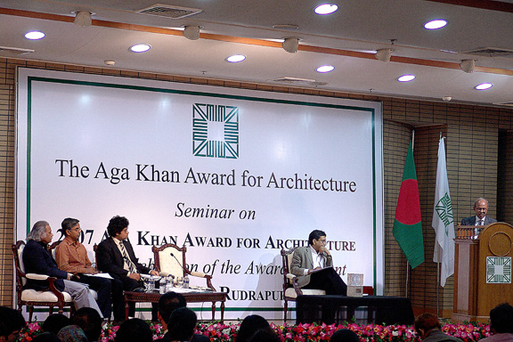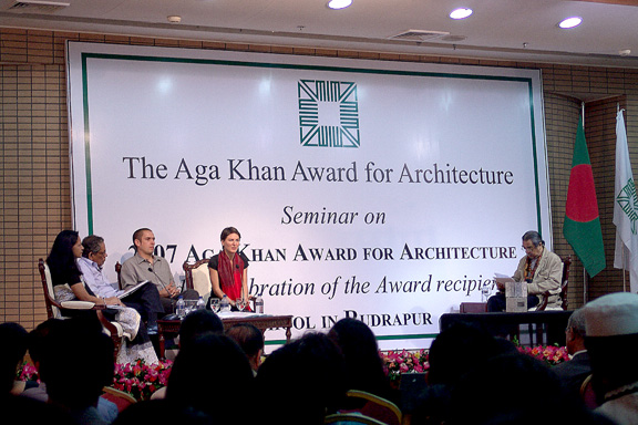 On 17th November 2008, the “Aga Khan Award for Architecture” arranged a seminar at Bangladesh China Friendship Conference Center, Dhaka to present the 2007 winning projects to the professional community and architectural students in Bangladesh and to celebrate the School in Rudrapur, Bangladesh, winner of the 2007 Award. The seminar participants were architects, academics, students and other professionals from different fields from Bangladesh and abroad. The department of architecture participated the seminar with a team consisting of 30 members including teachers and students. The seminar programme was divided into three thematic sessions that brought together the nine projects that received the 2007 Award. Each session began with films, followed by panel discussions of the projects. An exhibition on the 2007 Aga Khan Awards were on display at the seminar venue. | ||||||||||||