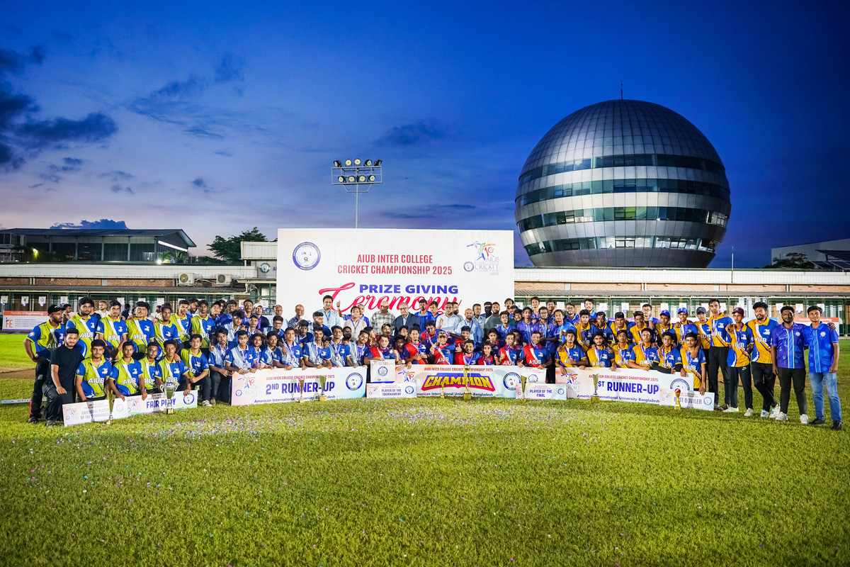 The vibrant sports field of American International University-Bangladesh (AIUB) came alive with excitement as the grand finale and prize-giving ceremony of the AIUB Inter College Championship 2025 took place on Thursday, July 3, 2025. The championship, a marquee event organized by the Office of Sports in collaboration with the Office of Student Affairs, kicked off on June 29, 2025, bringing together 32 enthusiastic college teams from across Dhaka City.
