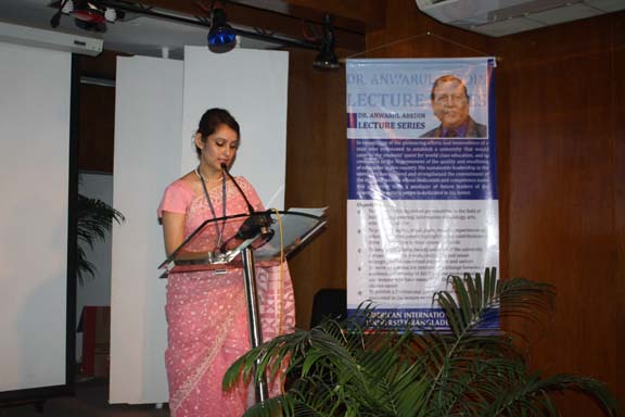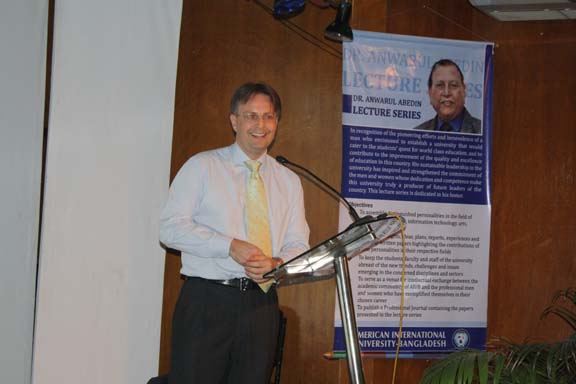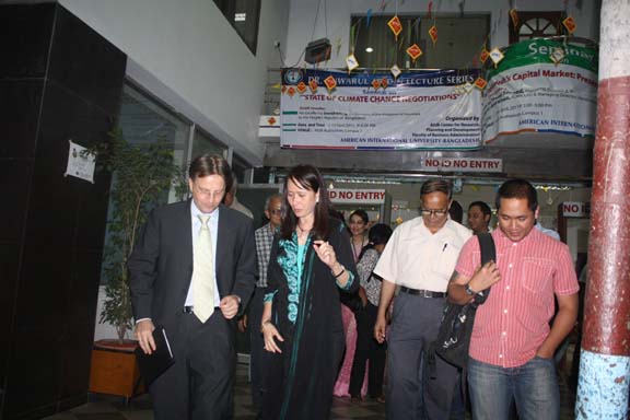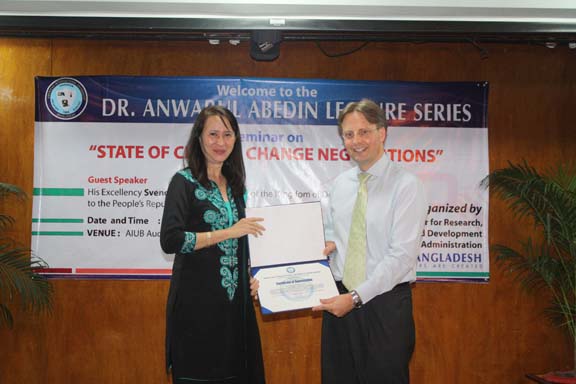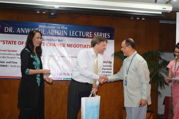 The Spring 2010-2011 edition of the Dr. Anwarul Abedin Lecture Series was held last Wednesday, 13 April 2011 in Campus 1 Auditorium with His Excellency the Ambassador of the Royal Danish Embassy, Mr. Svend Olling. He delivered a lecture on the topic: State of Climate Change Negotiations. It was a very informative and timely topic in view of the global concern on climate change giving more emphasis on the situation of Bangladesh. He also discussed the dynamics of negotiations on how the developed countries support the developing countries in their crusade to avert the impact of climate change especially to poor or underdeveloped countries. The program was participated in by the MBA faculty and students. They were amply welcomed by the Pro Vice Chancellor, Prof. Dr. Anwar Hossain. The distinguished guest speaker was appropriately introduced by the Dean of the Faculty of Business Administration, Prof. Dr. Charles C. Villanueva. After the lecture discussion, an open forum followed. In recognition of the invaluable service rendered by the Ambassador, the university presented a Certificate of Appreciation and some souvenirs of the university. The whole program was emceed by Ms. Farheen Hassan, Head, Department of Management.