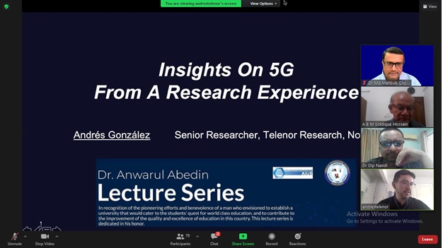 On the 06th day of May 2021, an informative webinar titled as ‘Insights on 5G from a research experience’ was held as a part of “Dr. Anwarul Abedin Lecture Series” at American International University-Bangladesh (AIUB). The webinar was organized by the Faculty of Science and Technology in the honor of AIUB’s visionary Founder Chairman Dr. Anwarul Abedin who catalyzed substantial transformation in the educational sector of the country.