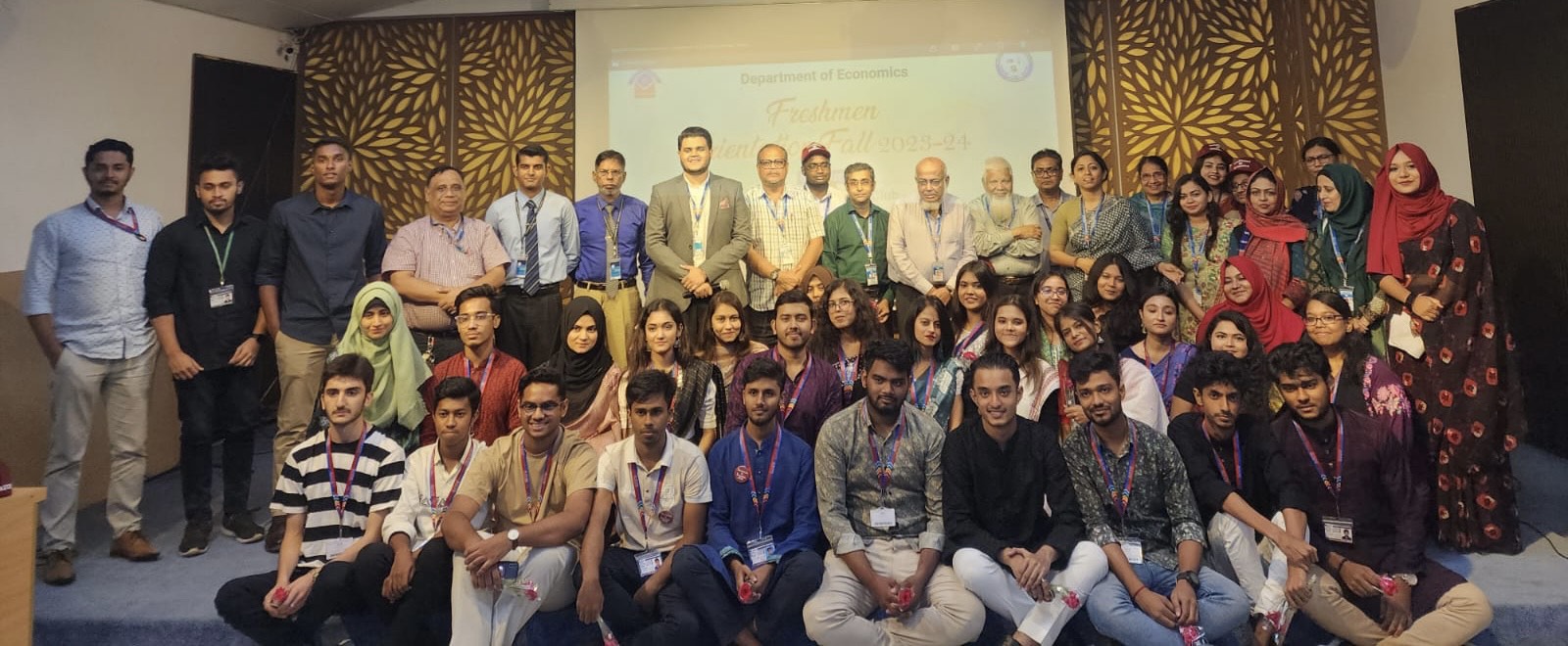 On October 4, 2023, the AIUB Economics Club organized a lively and interactive Freshmen Orientation program for the incoming students of the Department of Economics for Fall 2023 - 2024 semester. The event took place at AIUB Media Studio and was designed to extend a warm welcome to the newest members of the Economics Department.