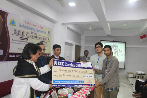 Yet again, Team “ABC” secured 1st Runner-Up by a neck fight in Robo Soccer competition at EEE Carnival-2018 organized by EEE Department of Leading University. The carnival held at Leading University permanent campus in Sylhet.