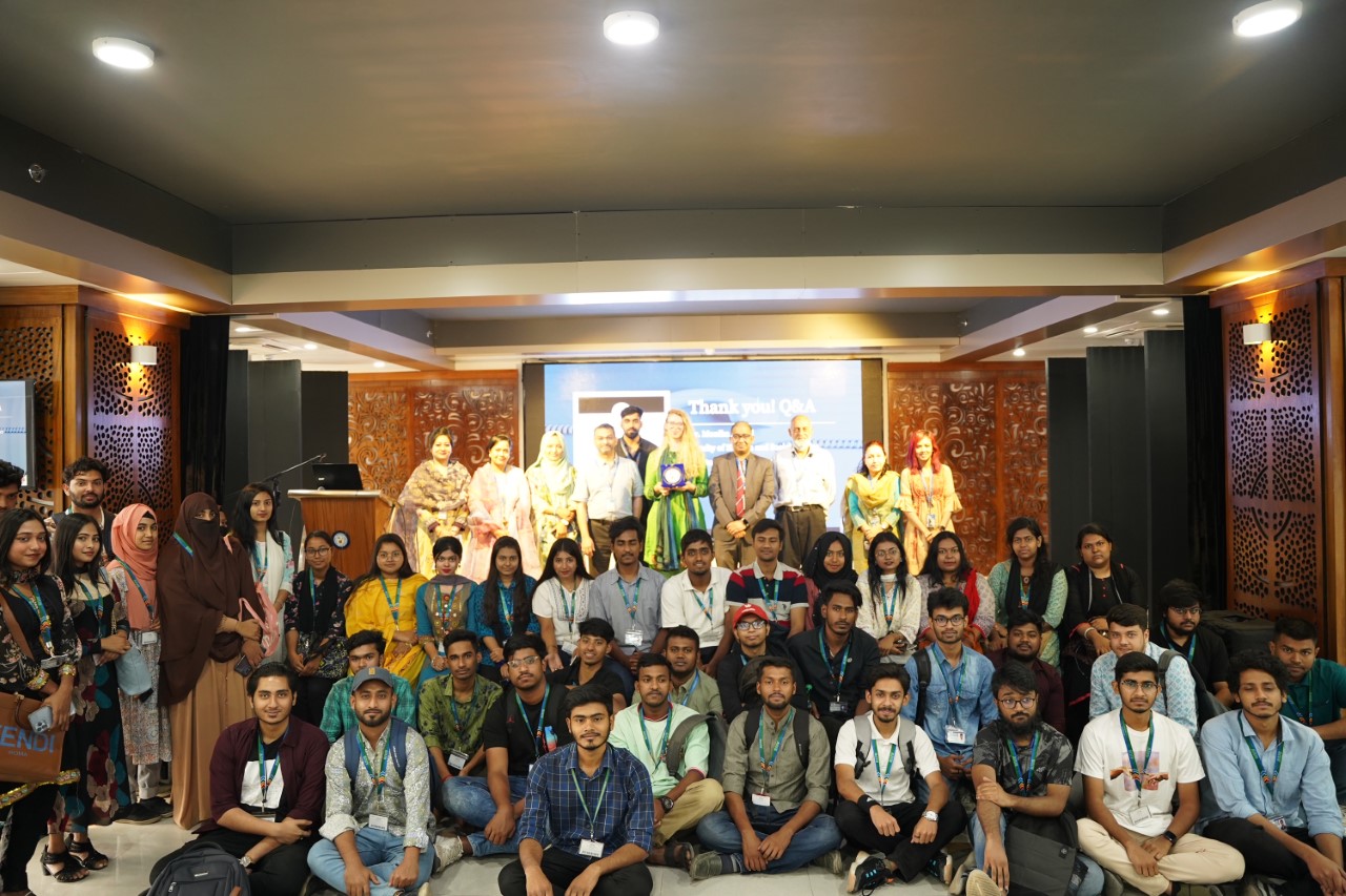 The Faculty of Business Administration (FBA) of the American International University-Bangladesh (AIUB) facilitated a faculty mobility session under the Erasmus+ Program. This time AIUB hosted Dr. Monika Belhaj from Vilnius, Lithuania. Dr. Monika Belhaj holds a Ph.D. in Management and Commerce from the University of Tasmania, Australia. Currently, she is working as a faculty member at the Faculty of Human and Social Studies of Mykolas Romeris University (MRU). She is also a project manager under the "Create Lithuania" young professionals’ program for the country’s Investment Promotion Agency.