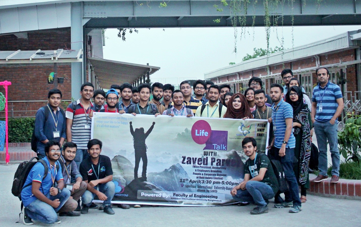 On April 11, 2018, Engineering Students Association of Bangladesh (ESAB) AIUB Unit Face organized an interactive seminar titled “Life Talk with Zaved Parvez” at American International University-Bangladesh (AIUB). The objective of the event was to groom the students for taking better decisions in next stage of life.
