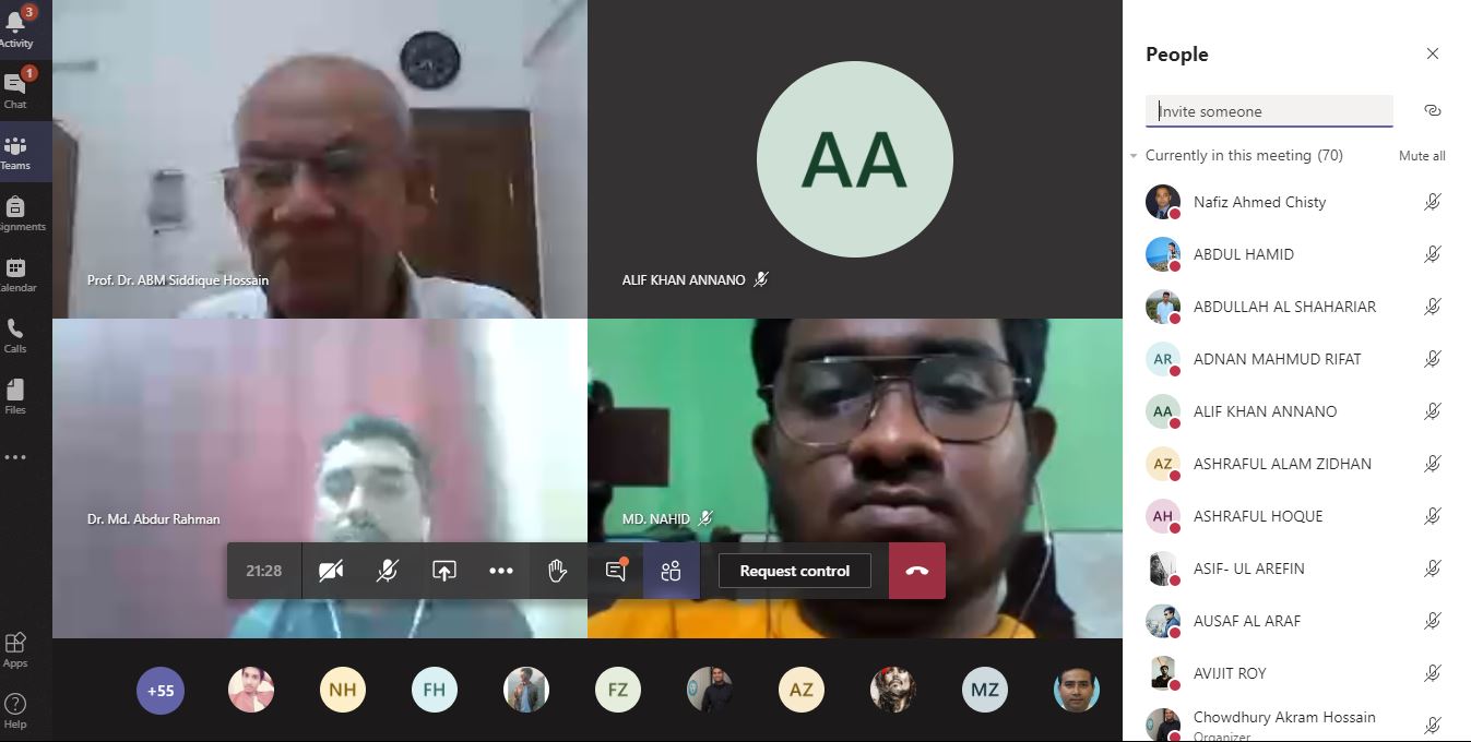 On June 30, 2020 Faculty of Engineering (FE) organized an orientation program for the freshman students of Dept. of Architecture, EEE and IPE. Around 100 freshman students participated in this orientation program. The orientation program was inaugurated by Prof. Dr. ABM Siddique Hossain (Dean, FE, AIUB). He welcomed the freshman and talked about the post pandemic engineering scenario and how to integrate and contribute during that time. Then the organogram, policies and activities of Faculty of Engineering was presented by Prof. Dr. Md. Abdur Rahman (Associate Dean, FE). He also encouraged the freshman students to set career goals and act accordingly to achieve those goals from the day 1 of their undergrad studies. Afterwards Mr. Md. Saniat Rahman Zishan (Associate Professor and Head, Dept. of CoE, FE, AIUB) presented and explained the curriculum, it’s flow and how to use their AIUB portal effectively. He also described the pre-registration and registration procedure. Prof. Dr. Md. Abdul Mannan (Director, FE), Mr. Nafiz Ahmed Chisty (Associate Professor and Head in Charge, Dept. of EEE, FE, AIUB) and Mr. Chowdhury Akram Hossain (Senior Assistant Professor, FE, and Special Assistant, OSA, AIUB) introduced themselves with the student and participated in interactive queries from the admitted student. Freshmen students were highly appreciative and excited during their participation and asked varieties of questions towards the end of the session. The session continued for about 2 hours until the students were satisfied with all their queries.