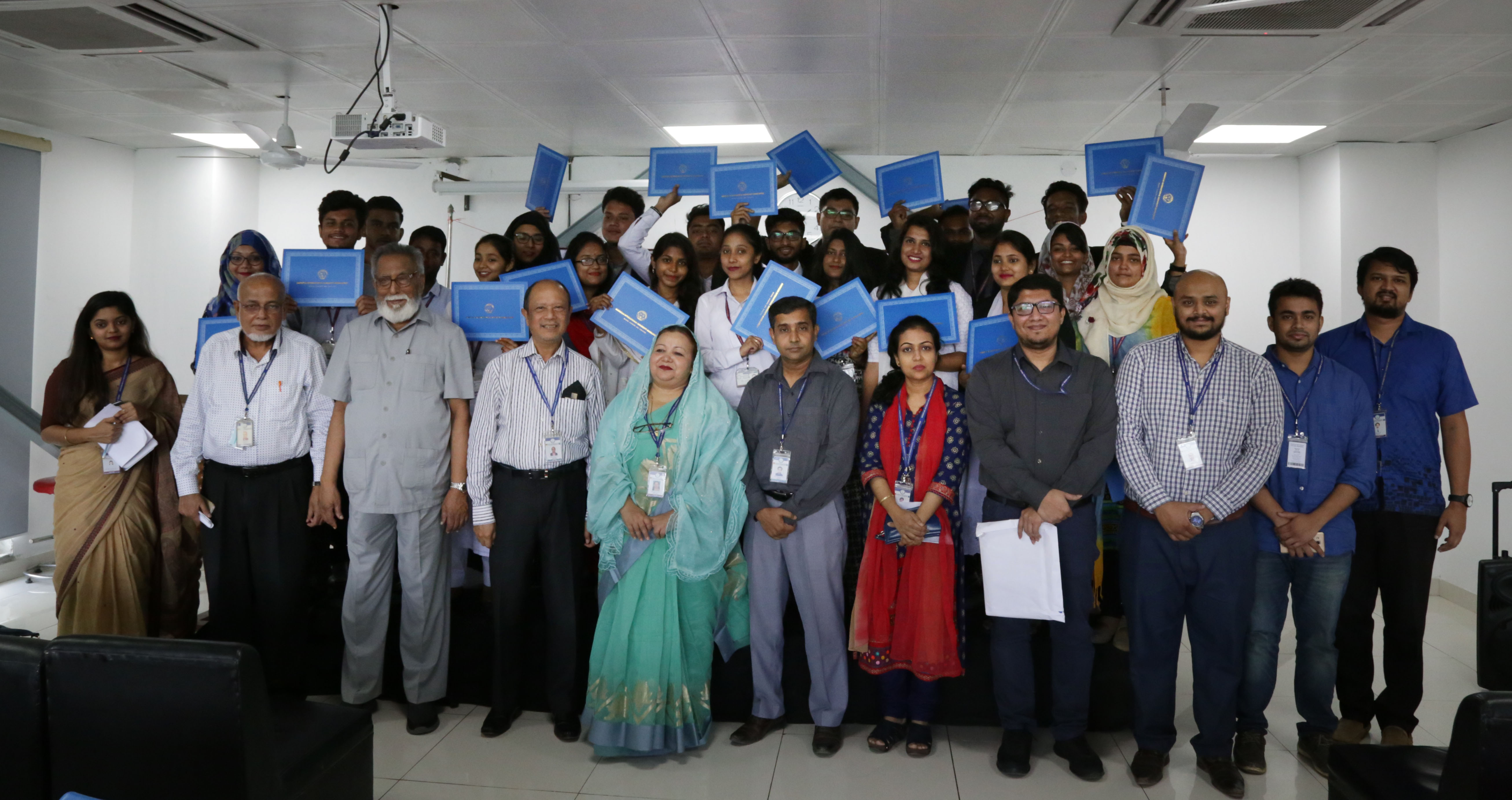 Faculty of Arts and Social Sciences honored its brightest students who earned their place in the Dean’s List on July 16, 2018. Twenty three students from the Department of English, Media and Mass Communication, Economics, and Law were awarded the Certificate of Recognition for their outstanding academic performance in the Spring 2017-18. Students who secured GPA 3.75 or above and met other rigorous criteria were selected for the award. Pro Vice-Chancellor Dr. Tafazzal Hossain, Vice President of Academics Dr. Charles C. Villanueva, Dean of the Faculty of Arts and Social Sciences Dr. Tazul Islam congratulated the students on their extraordinary feat and promised to extend all-out support to facilitate their progress. In their brief speech, two awardees expressed gratitude to their teachers and the university management for providing with a wonderful platform to groom and develop themselves. Head of respective departments and teachers were present to celebrate the students’ success.