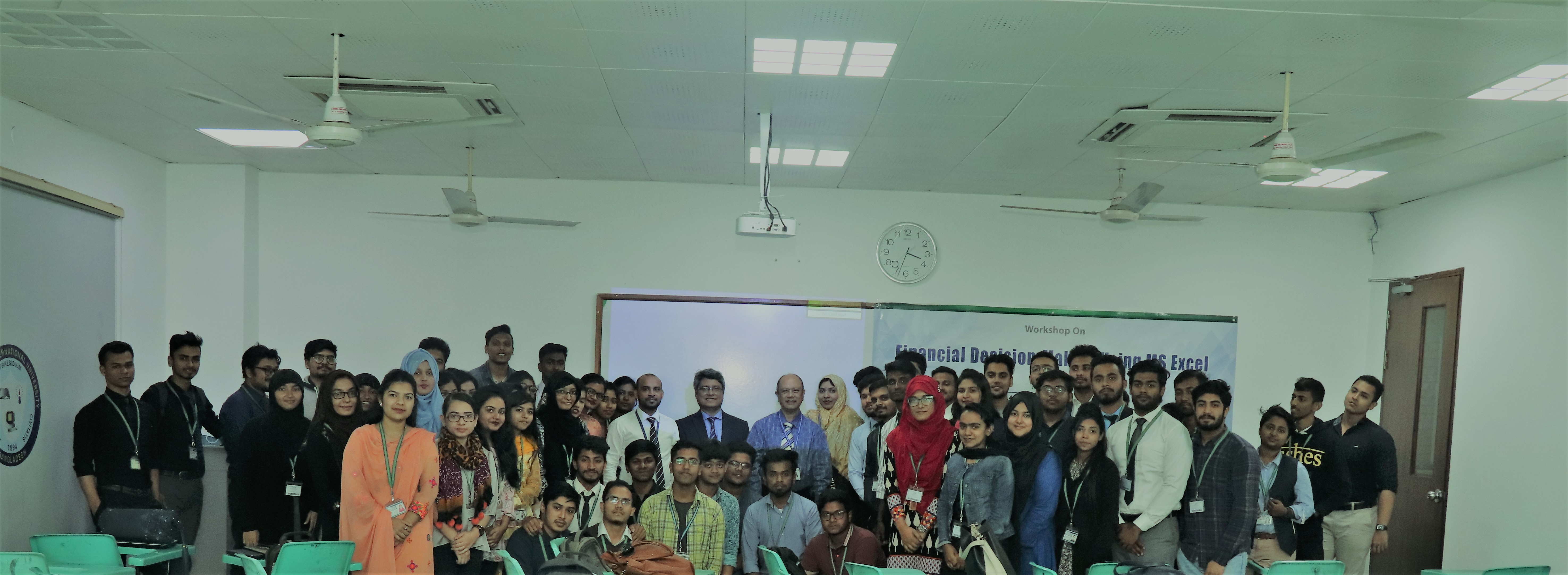 MS Excel software package is regarded as an essential for financial and statistical analysis. It is the most popular and effective spreadsheet tool today. It is user friendly, robust, and packed with excellent features. Keeping its popularity and effectiveness in a workplace in mind, the Department of Finance, AIUB organized a workshop titled ‘Financial Decision-Making using MS Excel’ to help students to learn the following functions: