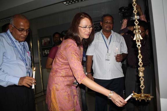 And then, once everything had been set, cleaned, and polished one more time for good measure, we welcomed our honorable VC Madam, Dr. Carmen Zita Lamagna and Dean of FASS, Dr. Tazul Islam to officially open the event by lighting the Mongol Prodeep (lamp). Having lit the Prodeep, they went around the exhibition, fixing their eyes on the photos, commenting on them (with their respective photographers in tow), with the VC madam frequently saying ‘Woow I like this one!’