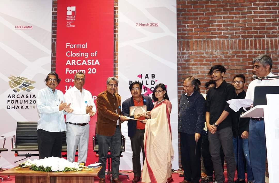 Students of Design Studio II (Fall 2019-20) from Architecture Department have won the First prize in Innovative City Branding Installation for the event of ARCASIA FORUM 20, DHAKA 19 held in November 2019. The execution of the installation was coordinated by the studio instructors Tabassum Zarin Tithi and Fauzia Rahman Mouri. The announcement and prize giving ceremony was arranged by Institute of Architects Bangladesh (IAB) on March 7, 2020. The second prize was won jointly by NSU & BUET, while the third prize went to Stamford University.