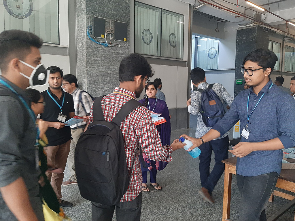 In light of the growing global concerns of the novel Covid-19, the basic practices and awareness of hygiene has become of utmost importance, especially in Bangladesh, where culturally, usage of sanitizers and disinfectants are not that common in our day-to-day activities. With that in mind, the American International University – Bangladesh (AIUB) took on a collaborative initiative together with the proactive community of its student clubs. From the 8th of March 2020, the AIUB Social Welfare Club – ‘Shomoy’ ran a “Hygiene Awareness Campaign 2020”, with the support of the AIUB Arts Club (AAC), AIUB Business Club (ABC), AIUB Computer Club (ACC), AIUB Community Engineering Students (ACES), AIUB Drama Club (ADC), AIUB Film Club (AFC), AIESEC in AIUB, AIUB Photography Club (AIUBPC), AIUB Oratory Club (AOC), AIUB Performing Arts Club (APAC), and the IEEE AIUB Student Branch. The campaign continued for almost 2 weeks, up until the university went virtual with online classes on the 20th of March 2020. Student volunteers from the clubs took up positions at the various entry points of the campus premises, on rotation throughout the day, where they ensured hand sanitization of every student and staff coming into the campus using alcohol-based hand rubs. They also provided everyone with information leaflets on the precautionary and prevention measures that should be taken to fight against the spread of the virus in the country, encouraging everyone to stay clean and safe amidst the pandemic. The combined efforts of all the student organizations not only aided the university with its numerous other initiatives in keeping the campus safe from transmission and contamination but instilled a strong sense of hygiene amongst the students and staff. The campaign has helped to develop a habit of cleanliness amongst everyone that will undoubtedly enable us, as an institution and a community, to overcome and prevail through these difficult times in the long run.