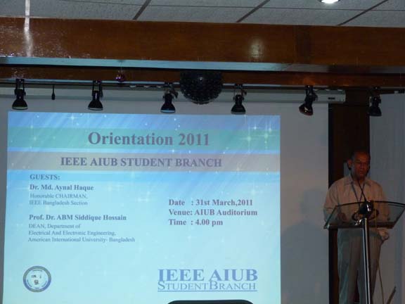 Where would a society be without the passion of its volunteers and it is for the purpose of introducing the ideals and plans of IEEE AIUB Student Branch that the Orientation was held at the AIUB auditorium on Thursday, 31st March, 2011. It must be a matter of great satisfaction to the existing volunteers that this was a well attended event, with enthusiastic students filling row upon row of the hall, eager to witness the presentation.