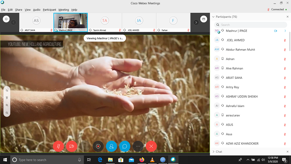 On 9th May 2020, IEEE AIUB Student Branch in collaboration with IEEE Industry Application Society AIUB Student Branch Chapter successfully organized a webinar titled Engineering in Agricultural Industry: Exploring the Untapped Potentials. Amid the ongoing COVID-19 crisis, when everyone is staying at home, the IEEE AIUB Student Branch organized this webinar through the CISCO WEBEX MEETING platform. The webinar was conducted by Mr. Mashrur H. Shurid, Co-founder & CEO, IPAGE Bangladesh Ltd, who mainly talked about the modern agricultural industry, the ways of introducing our farmers to precision agriculture technologies and helping them to achieve sustainability through climate-smart approaches. The webinar was inaugurated by Mr. Mashrur Sakib Choyon, Vice-Chairperson (Technical), IEEE AIUB Student Branch, who welcomed the participants and guests. He thanked the participants for participating in such informative event organized by IEEE AIUB Student Branch. He then talked about the rules, regulations and etiquettes which should be followed by the participants throughout the webinar.
