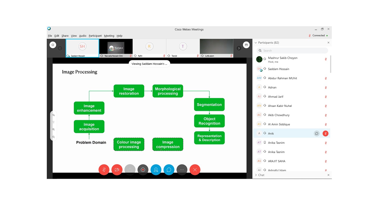 On 24th April 2020, IEEE AIUB Student Branch in collaboration with IEEE Computer Society AIUB Student Branch Chapter and Pondits successfully organized a webinar titled ‘Getting Started with Image Processing using Python’. Amid the ongoing COVID-19 crisis, when everyone is locked down in their homes, the IEEE AIUB Student Branch in celebration of ‘PES Day 2020’ organized the webinar through the CISCO WEBEX MEETING platform. The seminar was conducted by Mr. Saddam Hossain, CEO, Centureon IT; Co-Founder, Edwin who mainly focused on the importance of digital image processing and how Python Language can be used in this sector. The webinar was inaugurated by Mr. Mashrur Sakib Choyon, Vice-Chairperson (Technical), IEEE AIUB Student Branch who welcomed the participants and guests. He talked about the rules and regulations along with the etiquettes those should be followed by the participants throughout the webinar.